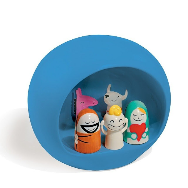 Uno dei miei preferiti, già presente da qualche anno sul mercato, è la Natività di Alessi : un gruppo di statuine in ceramica composto, nella sua forma base, da Maria, San Giuseppe, Gesù Bambino, l’asino e il bue, tutti collocati dentro una capanna sferica disponibile in tre colori!